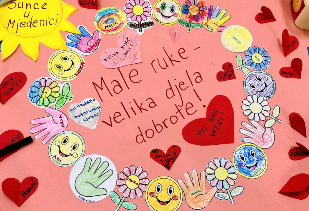 Male ruke zaista mogu napraviti velika djela dobrote. Kroz igru, boje i osmijehe učimo djecu da budu nježni jedni prema drugima, pomažu, djele i pružaju podršku. Svako srce i crtež nosi poruku prijateljstva, ljubavi i prihvatanja. Zajedno gradimo svijet u kojem se svako dijete osjeća sigurno, voljeno i važno. 🩷🌸