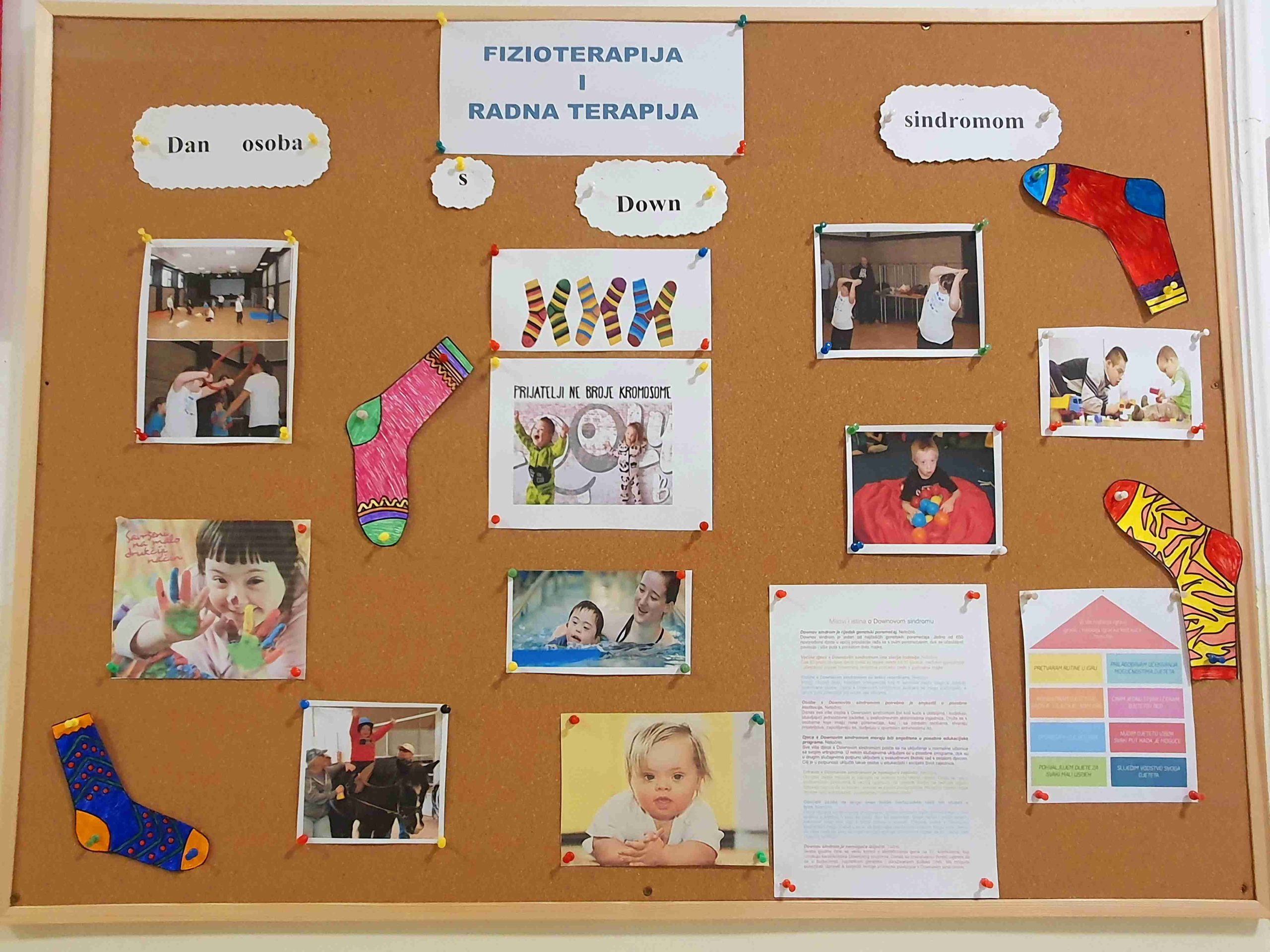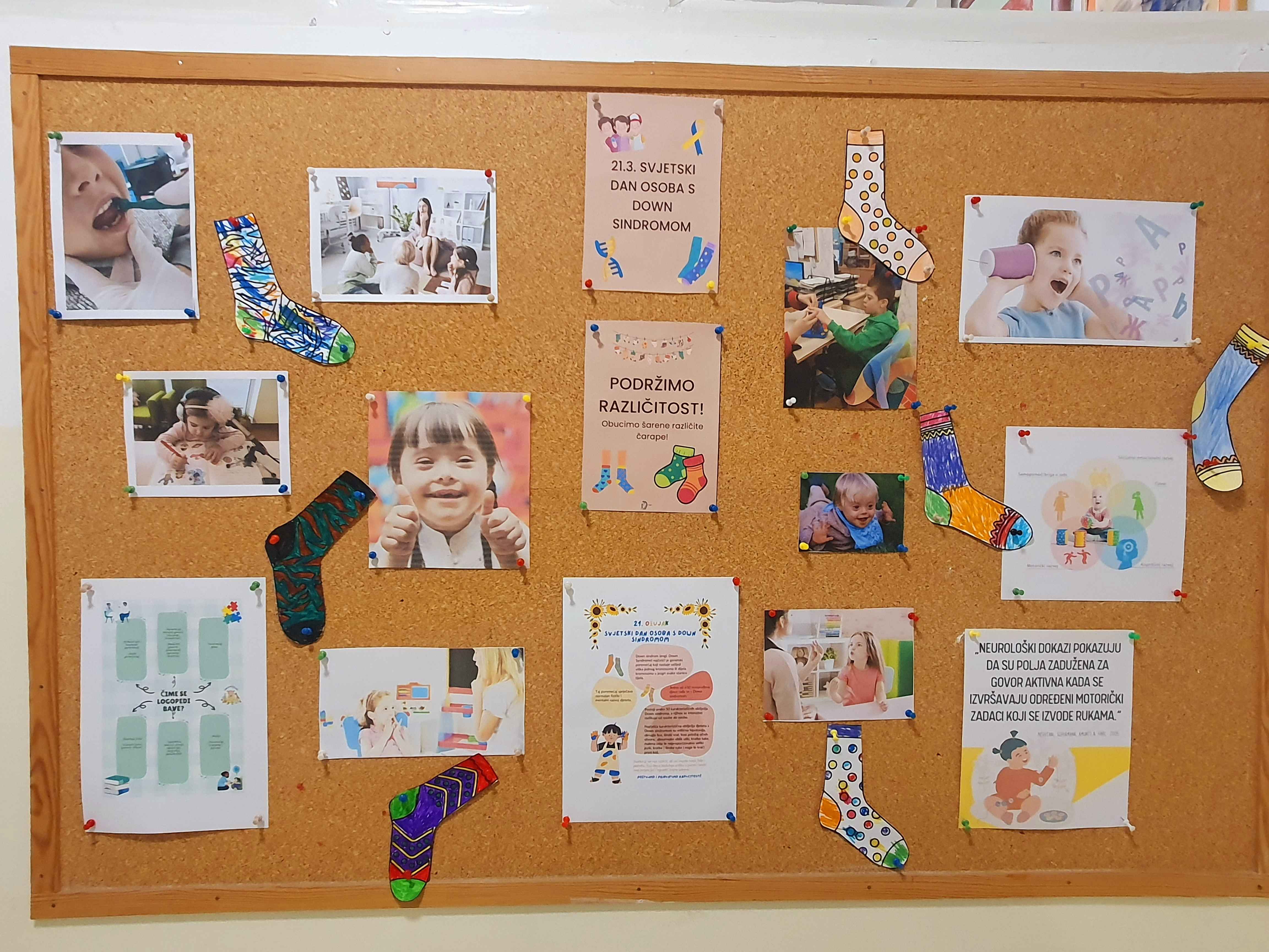 Svake godine 21. marta u našem Zavodu se kroz razne aktivnosti obilježava Dan osoba sa Down sindromom. Djeca sa Down sindromom su naši učenici i aktivno su uključeni u logopedske i fizioterapeutske tretmane. Kroz logopedski tretman potiče se razvoj govora i jezika, razvoj razumijevanja, jačanje oralne motorike (usne, jezik, vilica), uvođenje alternativne komunikacije (gesta, slike, PECS).