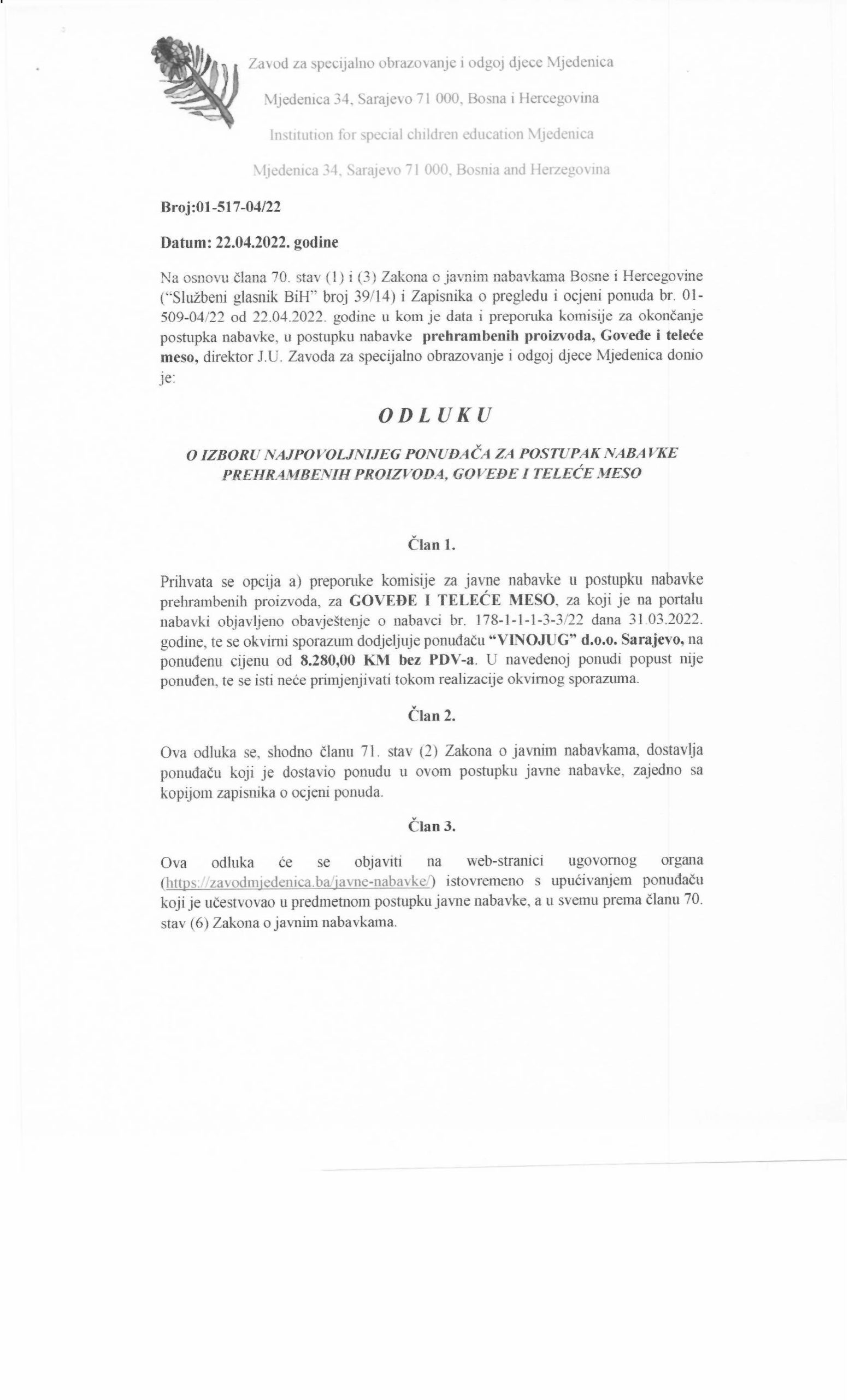 Odluke o prehrambenim proizvodima: LOT 1 – 7 25/04/202228/06/2022 Zavod Mjedenica Share on Facebook Share Share on TwitterTweet Send email Mail