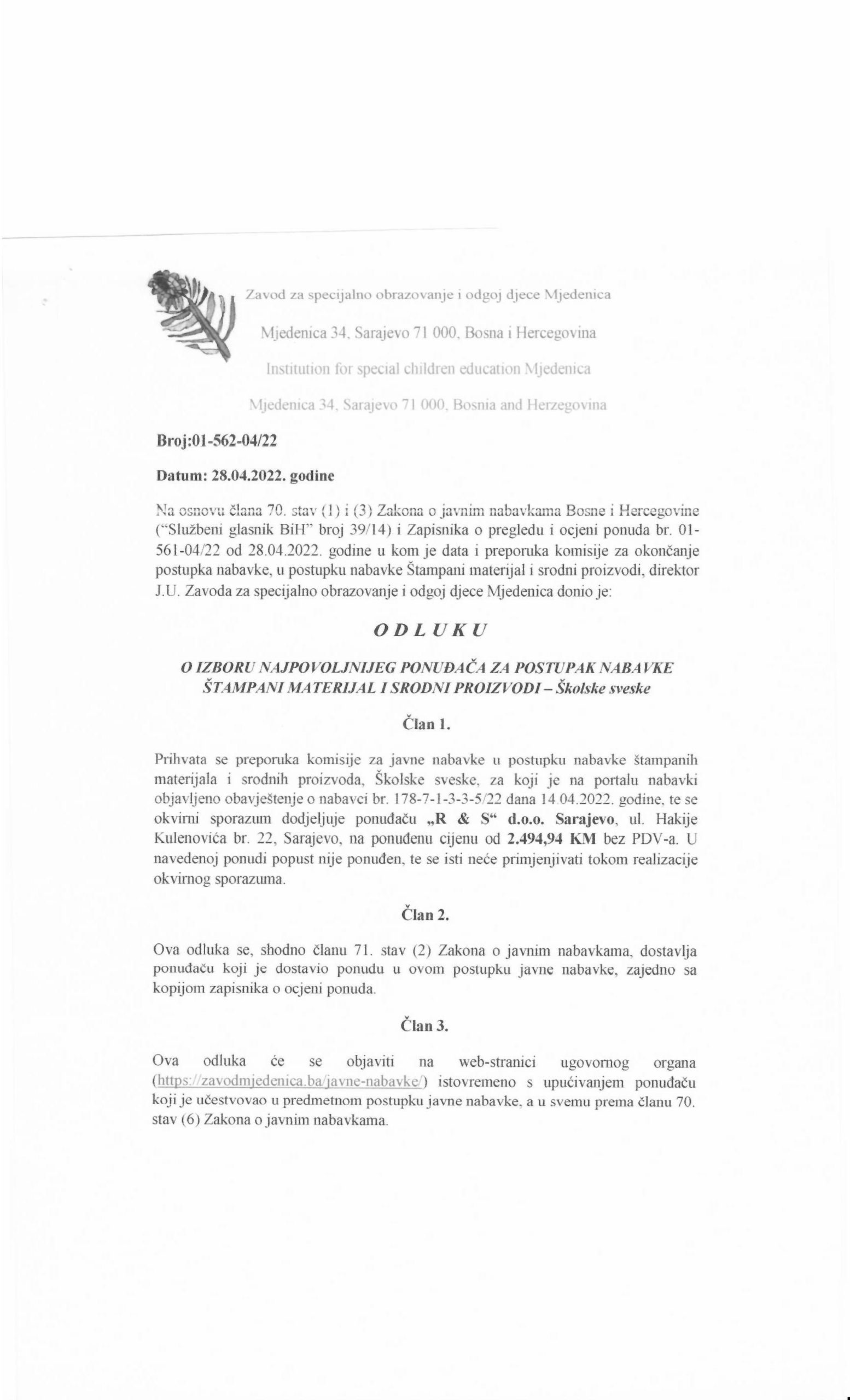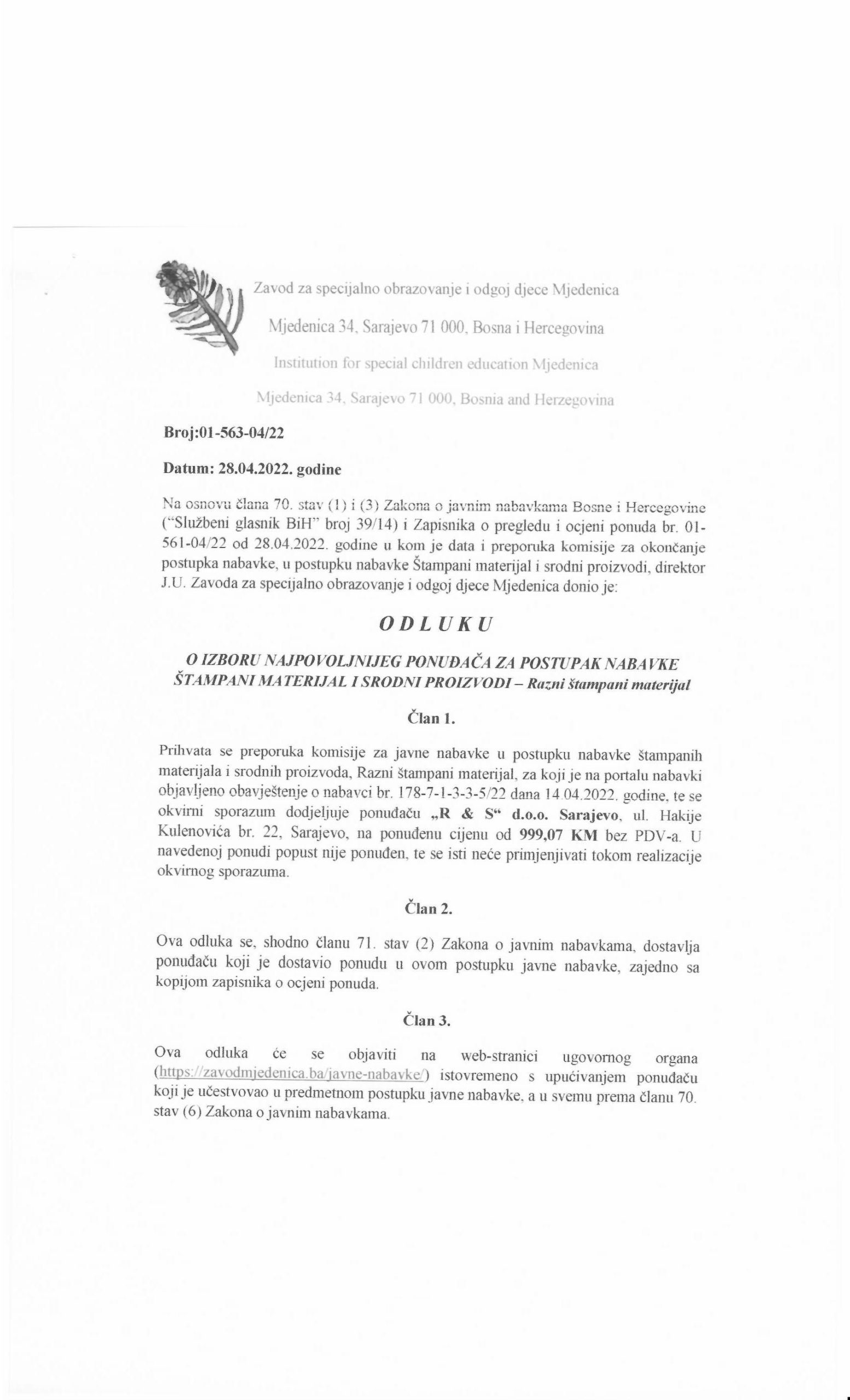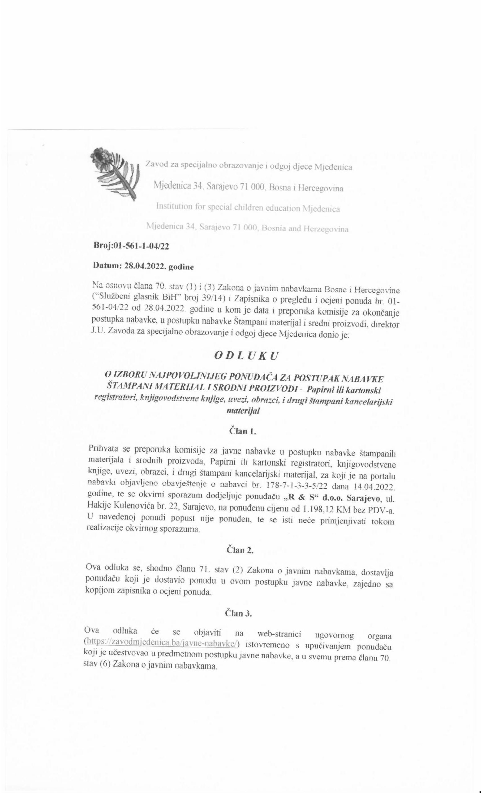 Odluke o JN štampanog materijala LOT 1 – 3 29/04/202228/06/2022 Zavod Mjedenica Share on Facebook Share Share on TwitterTweet Send email Mail