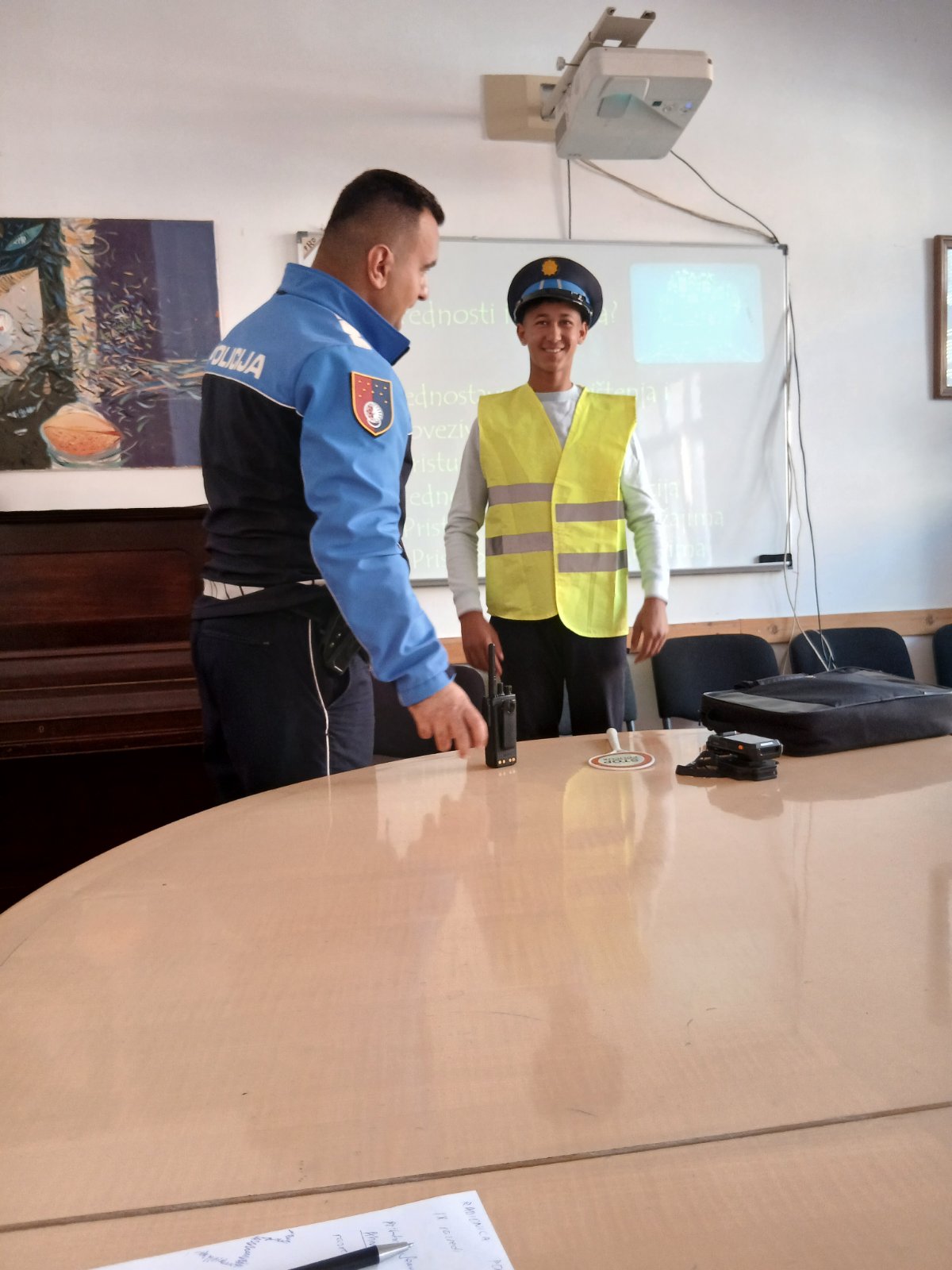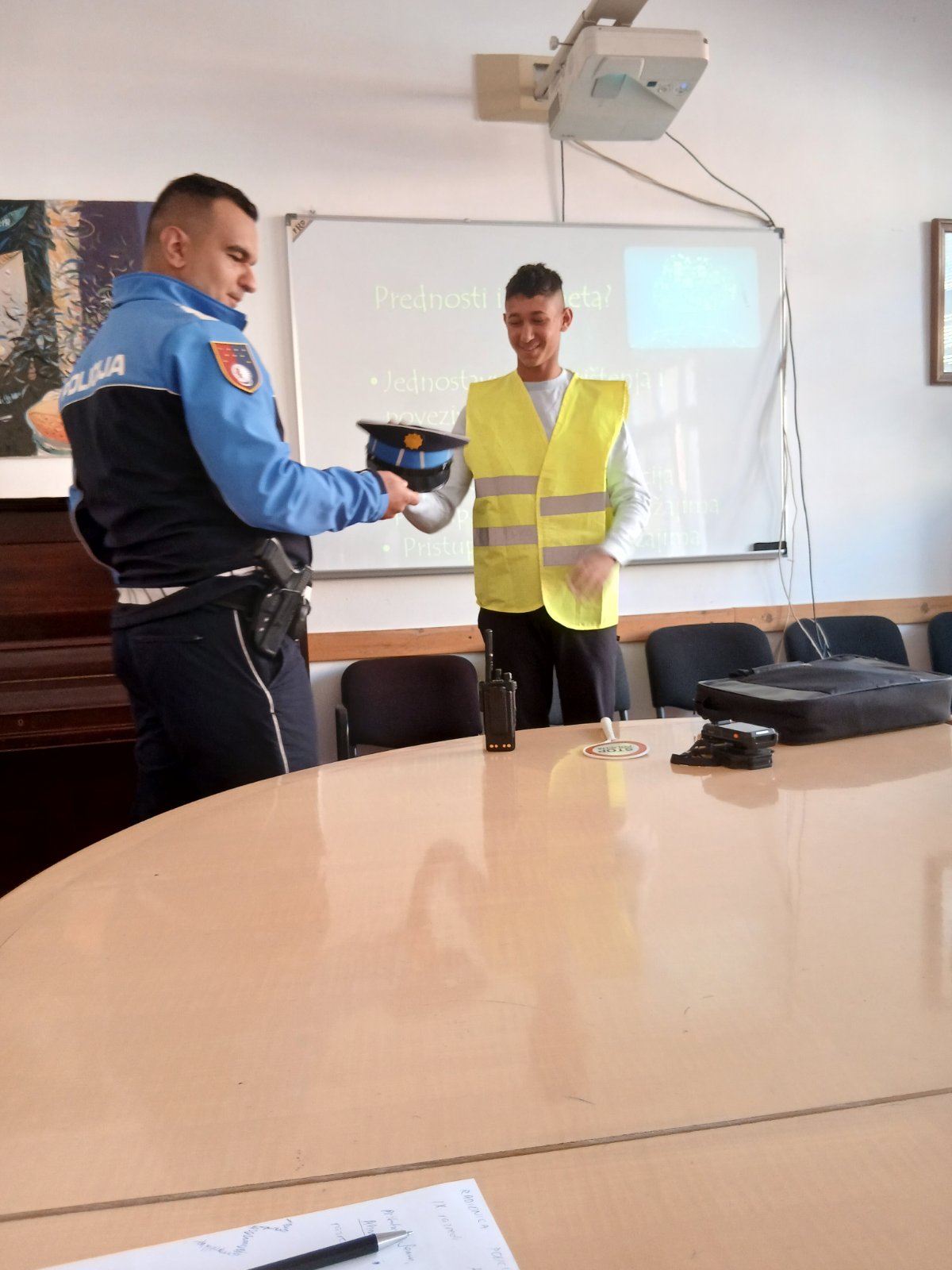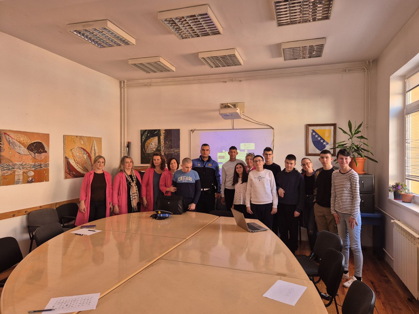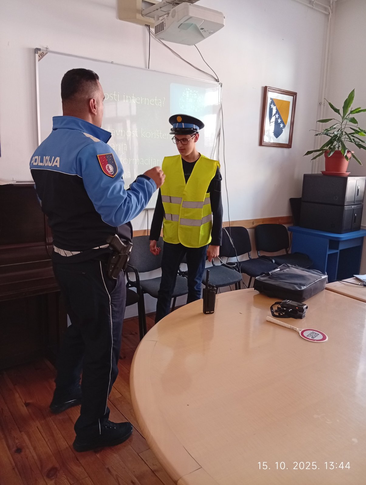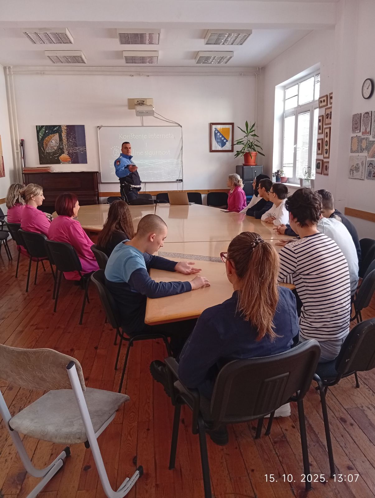 Stručna služba Zavoda u saradnji sa Policijskom upravom Stari Grad organizovala je interaktivnu radionicu sa učenicima IX1 i IX2. Uz podršku razrednica i stručnih saradnica policijski službenik Armin Karkelja prezentirao je temu “Sigurnost na internetu“, te pomogao ucenicima da upoznaju važnost i prednosti korištenja interneta, ali i rizike koji mogu biti prisutni kako u online, tako i u realnom okruženju. Učenici su dobili priliku daaktivno učestvuju tokom radionice i da dobiju preporuke šta trebaju da rade u konkretnim situacijama, kome da se obrate i kako da komuniciraju. Neki učenici su na kraju izrazili želju da se fotografišu sa policijskom kapom na glavi i prslukom, a potom je u znak zahvalnostiuslijedio veliki aplauz za realizaciju današnje radionice i za naše čuvare reda i sigurnosti